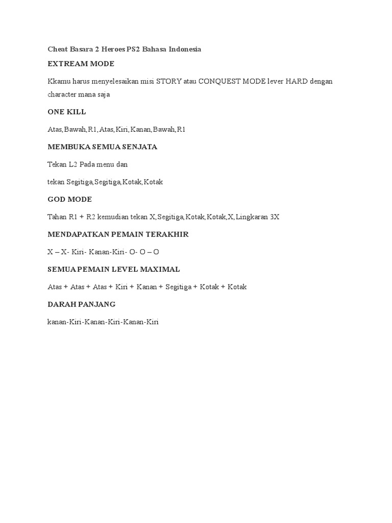 Extream mode kkamu harus menyelesaikan misi story atau conquest mode lever hard dengan character mana saja one kill atas,bawah,r1,atas,kiri,kanan,bawah,r1 membuka semua senjata tekan l2 pada menu dan. Cheat basara 2 heroes ps2 dan caranya,cheat basara 2 heroes dan cara mengaktifkannya, cara cheat. Silahkan di coba, jika ada yang tidak kalian mengerti tanyakan pada kolom komentar. Tahan r1+r2, lalu tekan x, segitiga, kotak, kotak, x, bulat (3x). The cheat basara 2 heroes ps2 dan caranya can be an android sport modifying that is easy to setup and use than most other accessible resources. Video kali ini saya akan membagikan tutorial cheat basara 2 heroes ps 2 yang kita mainkan menggunakan emulator pcsx2. Basara 2 heroes ps2 2019 part 2 ruclip.com/video/k9upjor2iz8/видео.html trik basara 2 heroes ps2 bukan cheat. Caranya tetap sama untuk membuka senjata di basara 2 heroes ini, semua sama untuk tiap karakter. Berikut ini adalah cheat sengoku basara 2 heroes ps2. Pada post kali ini saya akan membagikan kode raw game legend ps2 yang semua anak rentalan pasti pada tau game yang satu ini, nah di sini saya akan membagikan kode raw basara 2 heroes karena ada yang request jadi post. Seperti kita tahu bahwa setiap versi playstation pasti grafisnya juga akan berbeda, dulu mungkin lebih trend ps 1 dan ps2, namun kini sudah tersedia ps3. Now we have 2 cheats in our list, which includes 2 cheats codes. Sandi bost abu 8 months ago.